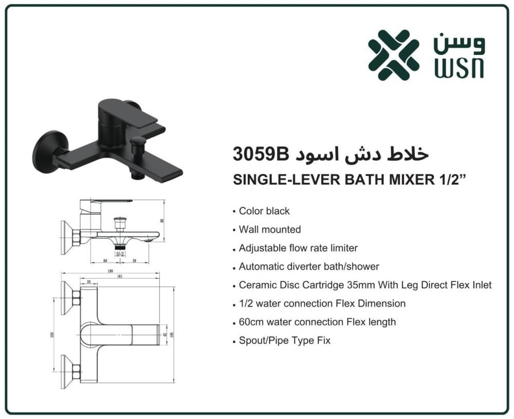 خلاط دش جداري – موديل 3059B | فخامة الأسود في كل تفصيلة