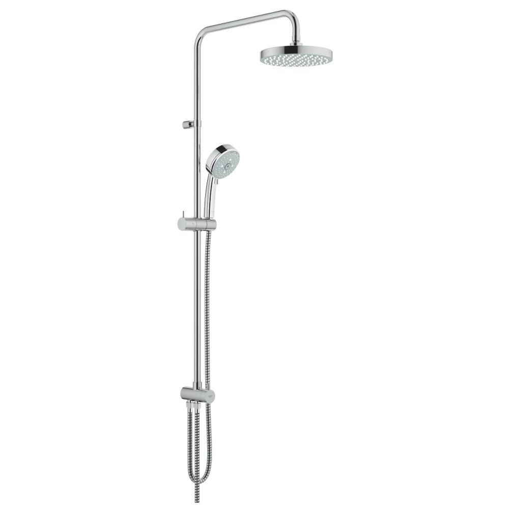 مسطرة الدش المزدوجة GROHE Cosmo موديل 2739400D تقدم تجربة استحمام متكاملة بفضل تصميمها الدبل الذي يجمع بين رأس دش علوي ورأس يدوي. مصنوعة بجودة ألمانية عالية وتشطيب كروم مقاوم للتآكل، وتأتي بضمان رسمي من الوكيل.