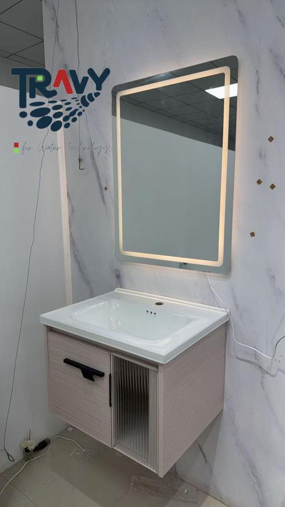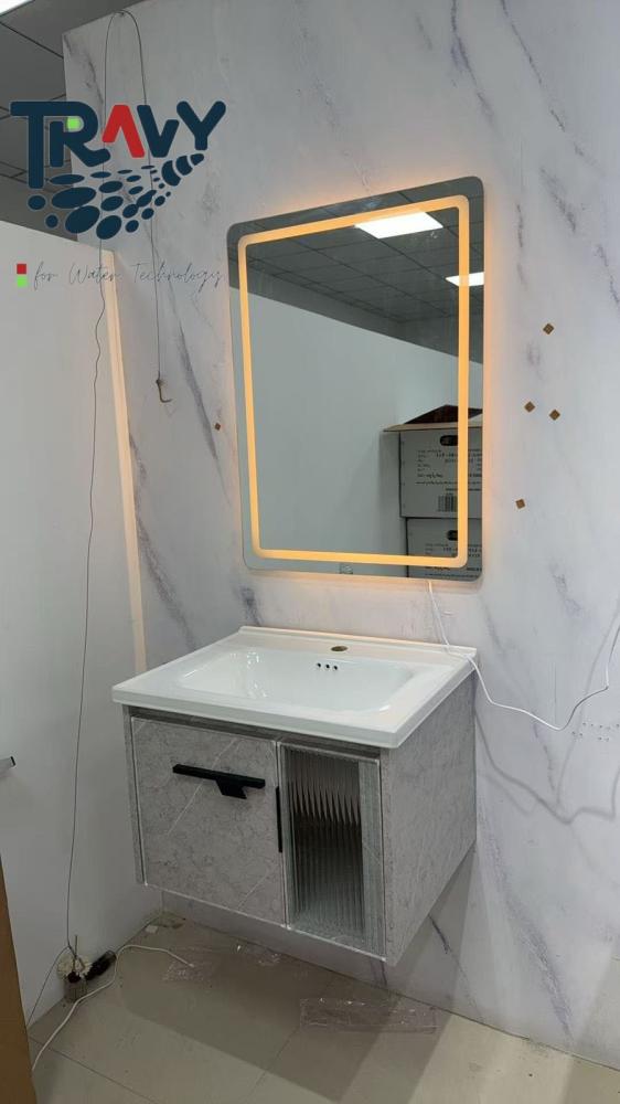 - التصميم: مودرن مع مرآة LED وإضاءة مدمجة